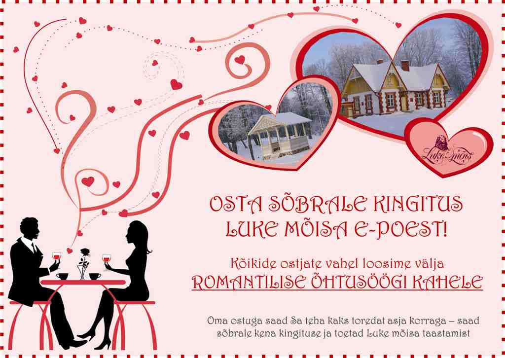 Ostes luke mõisa e-poest SÕBRALE kingitus, on sul võimalus lisaks VÕITA ROMANTILINE ÕHTUSÖÖK KAHELE!