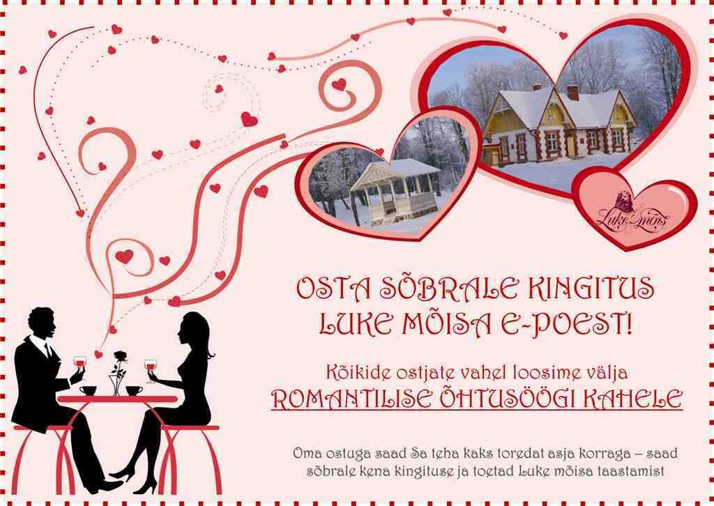 Ostes luke mõisa e-poest SÕBRALE kingitus, on sul võimalus lisaks VÕITA ROMANTILINE ÕHTUSÖÖK KAHELE!